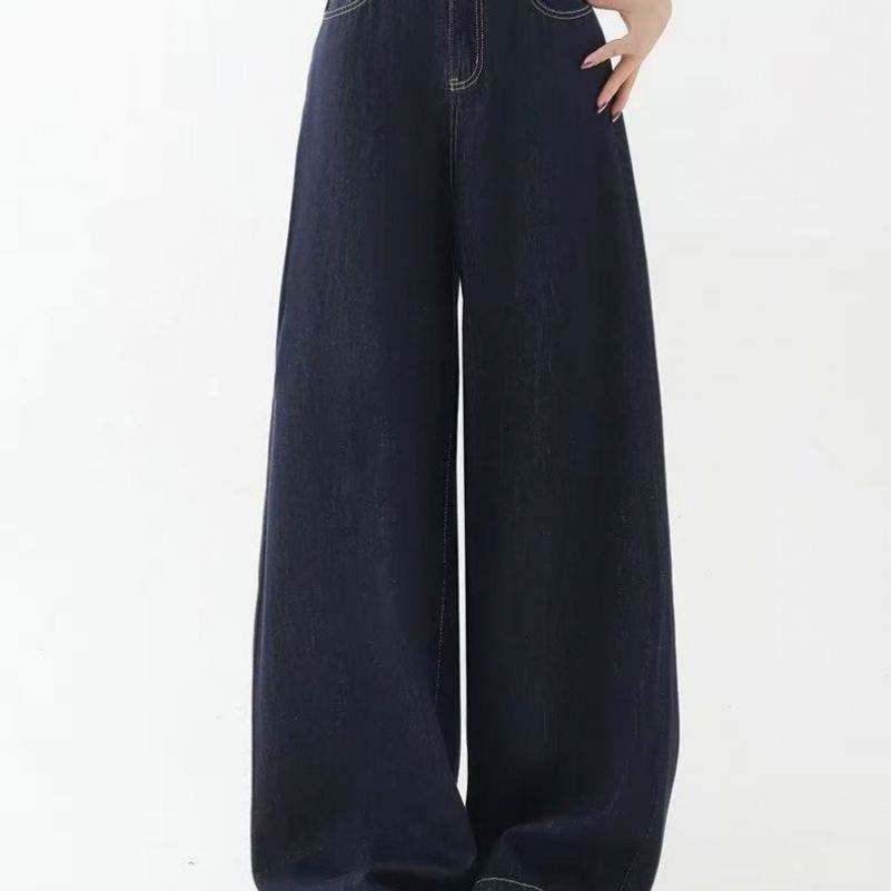 Nuevos pantalones vaqueros de pierna recta de corte holgado para mujer en índigo profundo con estilo informal retro americano