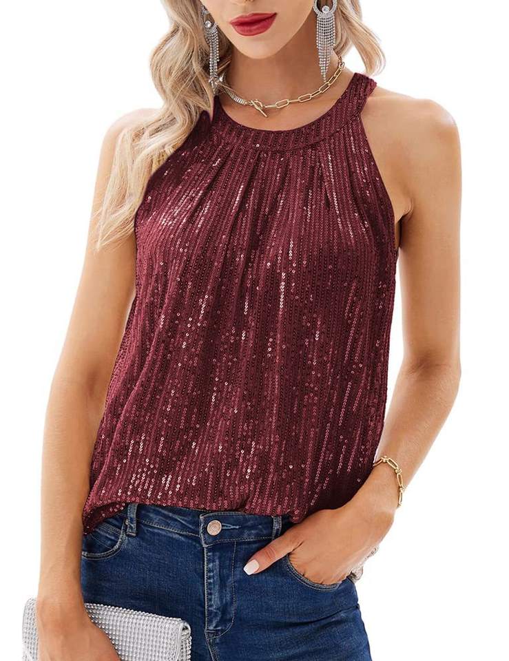 Camisa de tanque de fiesta de suspensión de lentejuelas brillante para verano