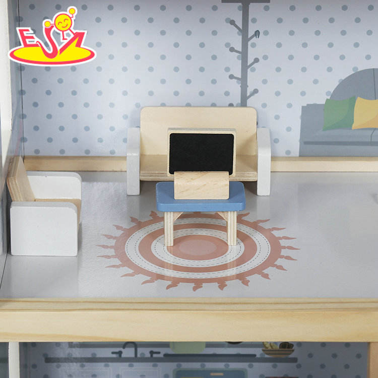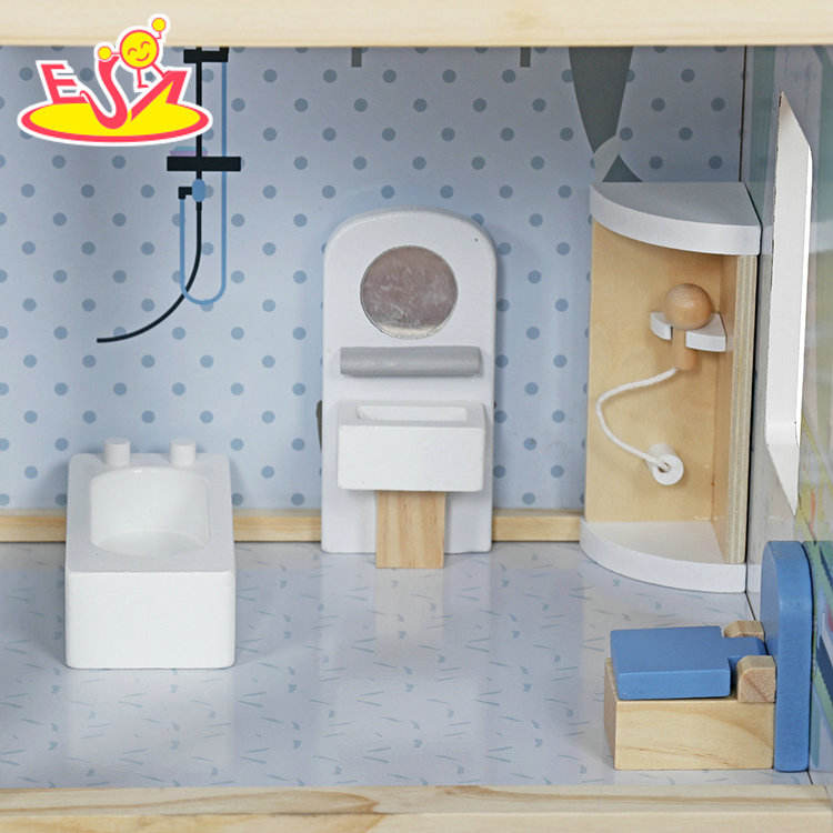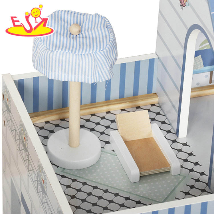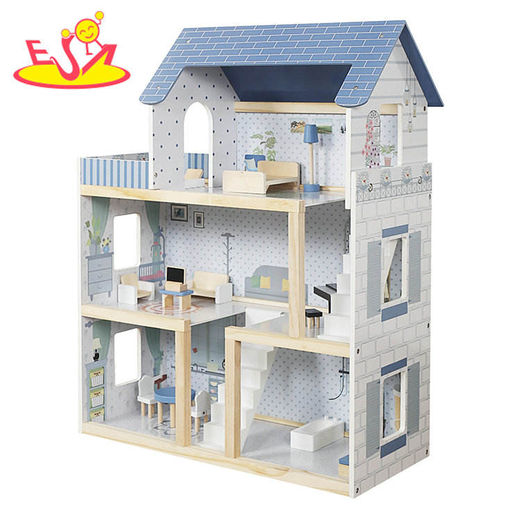 Nueva casa de muñecas de madera azul de 3 niveles, casa de muñecas de varios pisos con muebles y accesorios para niños, juego de simulación W06A413H