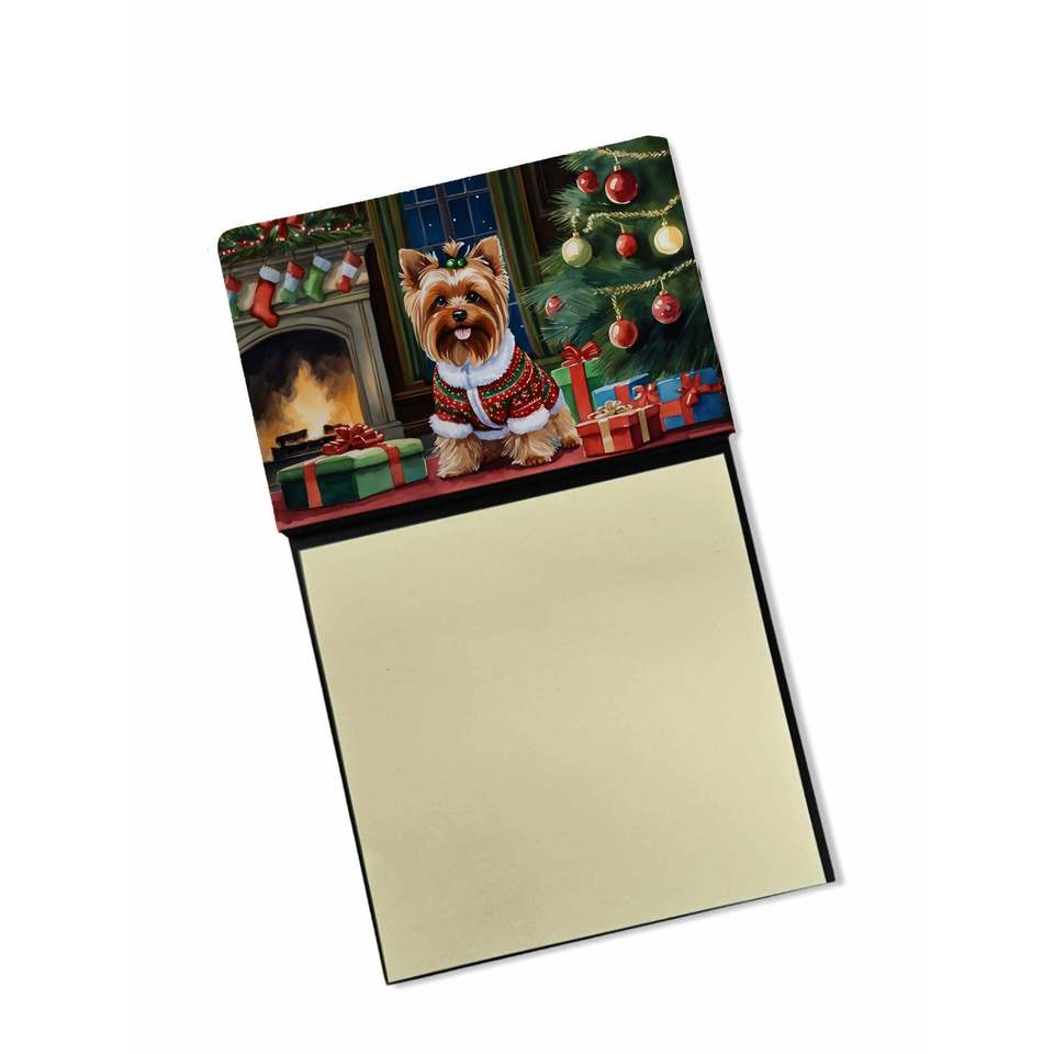 Dispensador de notas autoadhesivas de Navidad acogedor New Yorkie Terrier, accesorios de escritorio en blanco recargables, soporte para tarjetas y blocs de notas