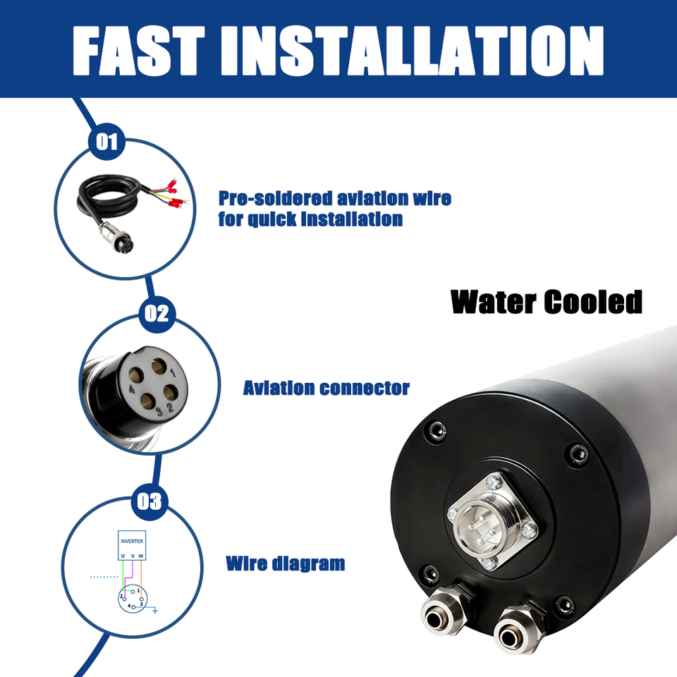 Nuevo Motor de Husillo para Fresadora CNC Zhong Hua Jiang, 80 mm, 2.2 kW, ER20, 24000 rpm, 400 Hz, Refrigeración por Agua
