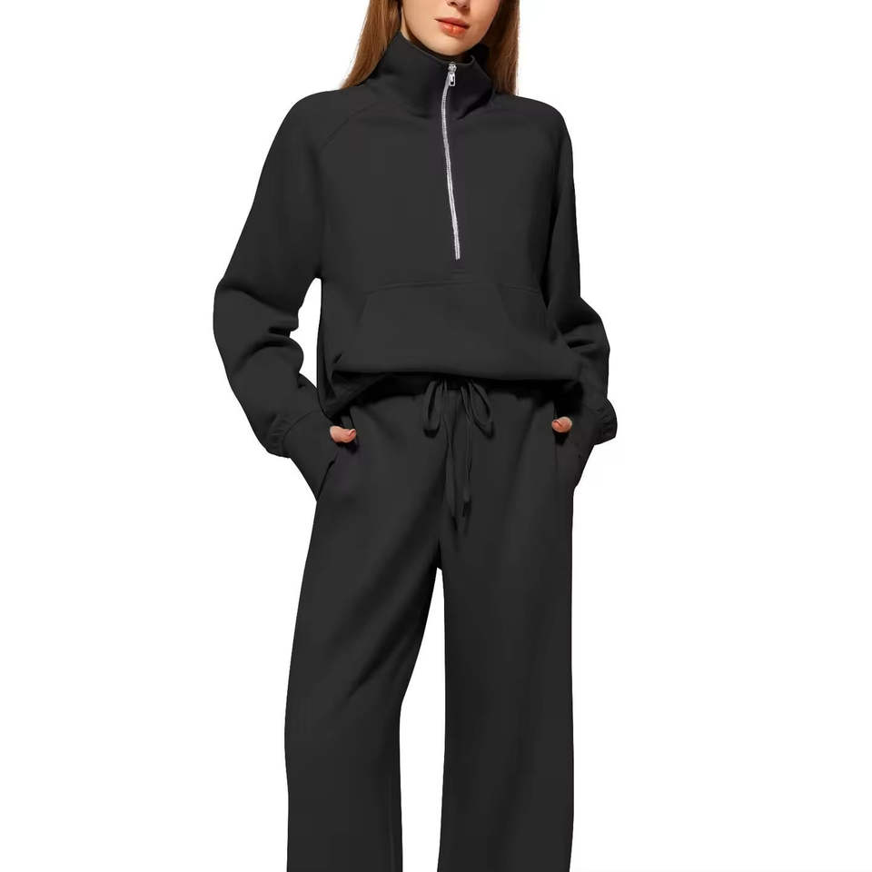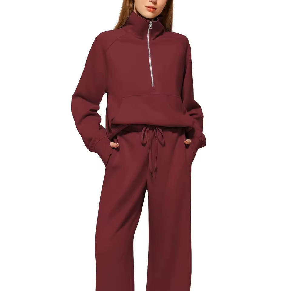 Nuevo Diseño con Cremallera, Chándales de Mujer de Alta Calidad con Encaje Bordado, 100% Algodón Felpa, Ropa Deportiva Urbana, Conjunto Largo de 2 Piezas, OEM