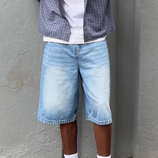 Recién llegado, pantalones vaqueros personalizados para hombre, pantalones cortos azules claros para hombre, pantalones holgados, pantalones cortos de talla grande, OEM personalizado