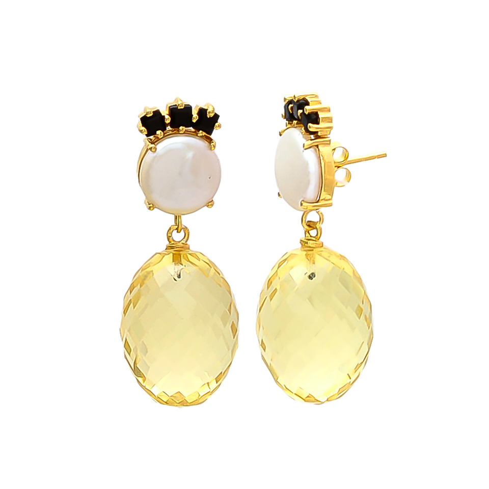 Recién llegado, pendiente de forma ovalada geométrica con citirina hidra y pendiente de piedras preciosas blancas brillantes de Gemstone