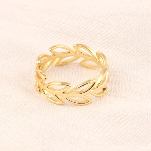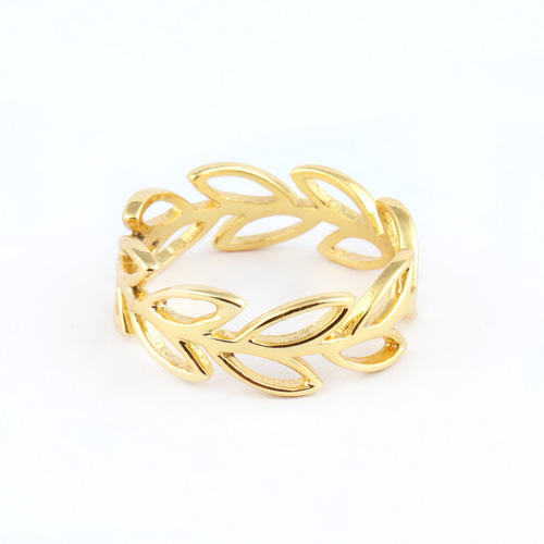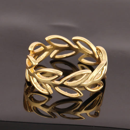 Anillo de plata de primera ley con forma de hoja para mujer, sortija, plata esterlina, latón, dorado, pulido, liso, hecho a mano