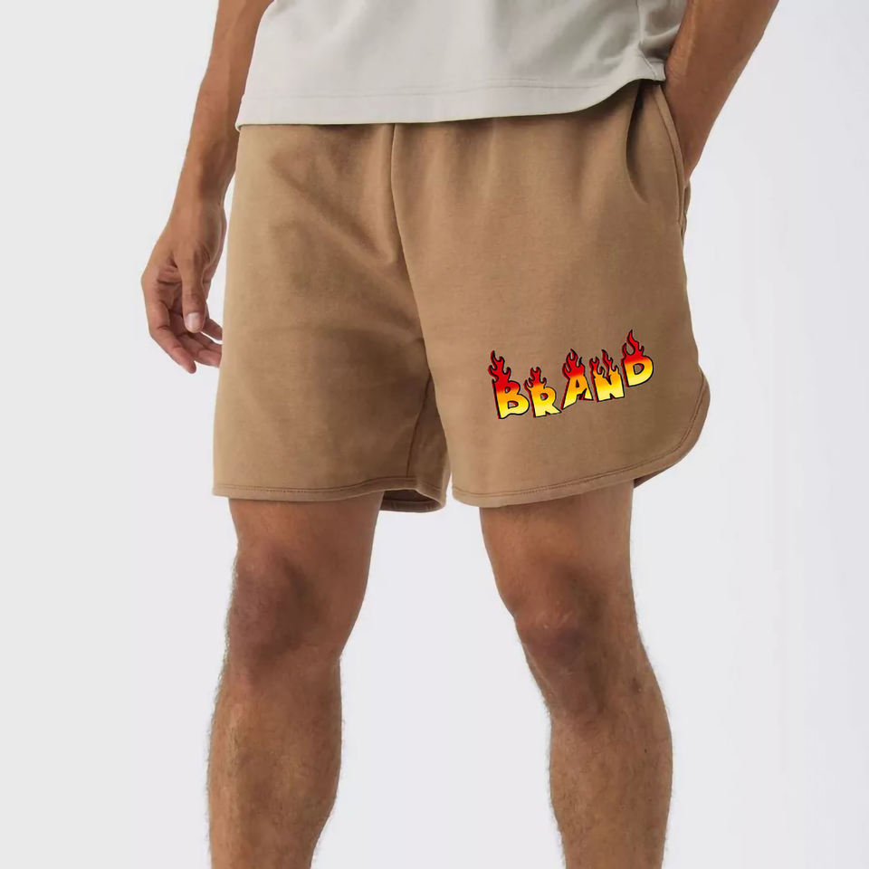 Recién llegado 2025, pantalones cortos personalizados para hombres, color sólido con bolsillos laterales, pantalones cortos de secado rápido con logotipo impreso personalizado de longitud corta para hombres