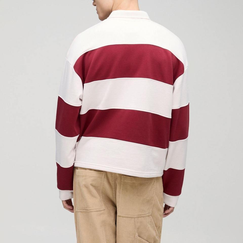 Nueva Camiseta polo 2025 de manga larga con hombros caídos a rayas para hombre, camiseta polo 100% de algodón holgada con estampado personalizado para hombre