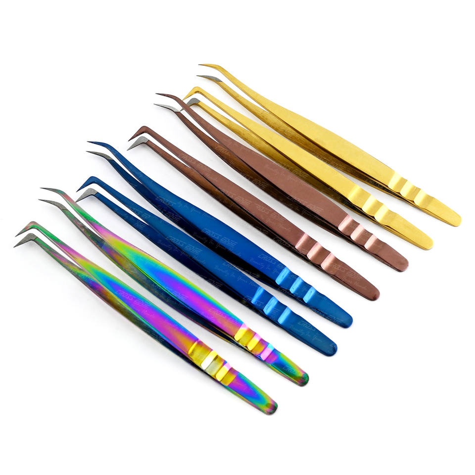 MOQ:5 unids pinzas de extensión de pestañas Conjunto Clásico pinzas de extensión de pestañas