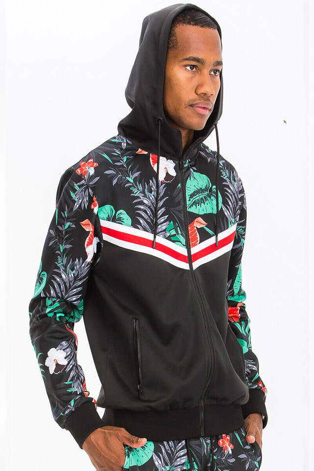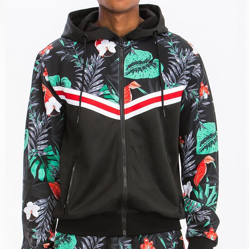 Conjuntos de chándales de manga larga de nuevo diseño para hombre con sudadera activa con cremallera de flores de sublimación y pantalones Trajes de invierno de 2 piezas