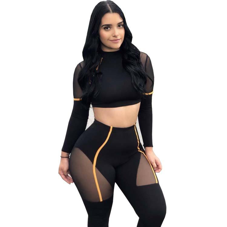 Nuevo diseño de Yoga y deporte conjunto de malla de retazos conjunto de dos piezas mujer Yoga Fitness ropa de manga larga de encaje ropa de gimnasio