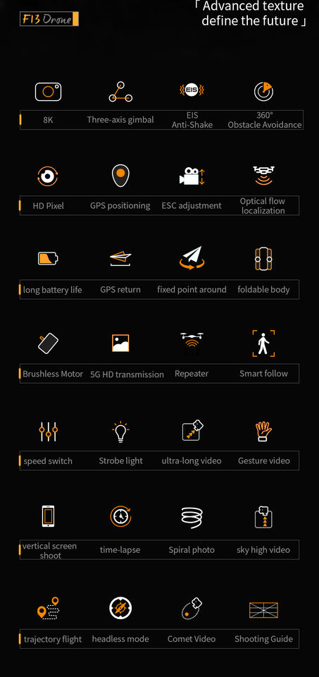 Modo sin cabeza, Con cámara, Una llave de despegue/aterrizaje, Control de App, PlegableFunción