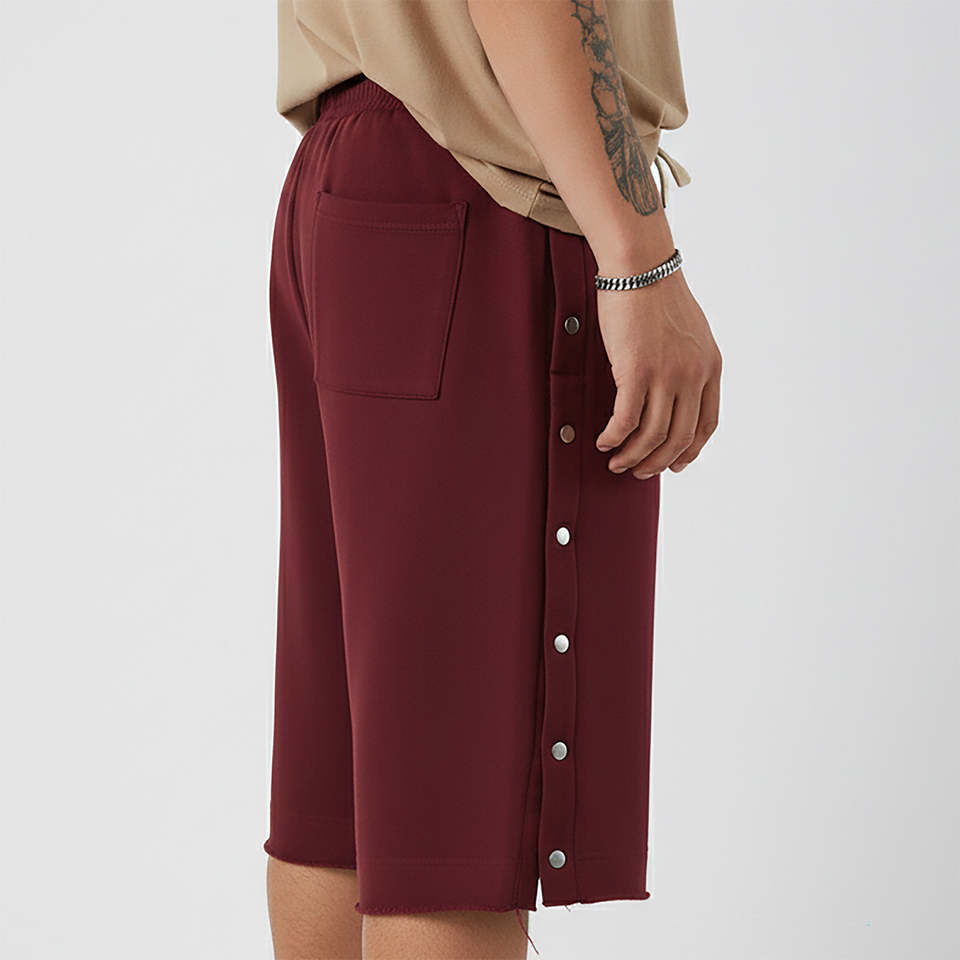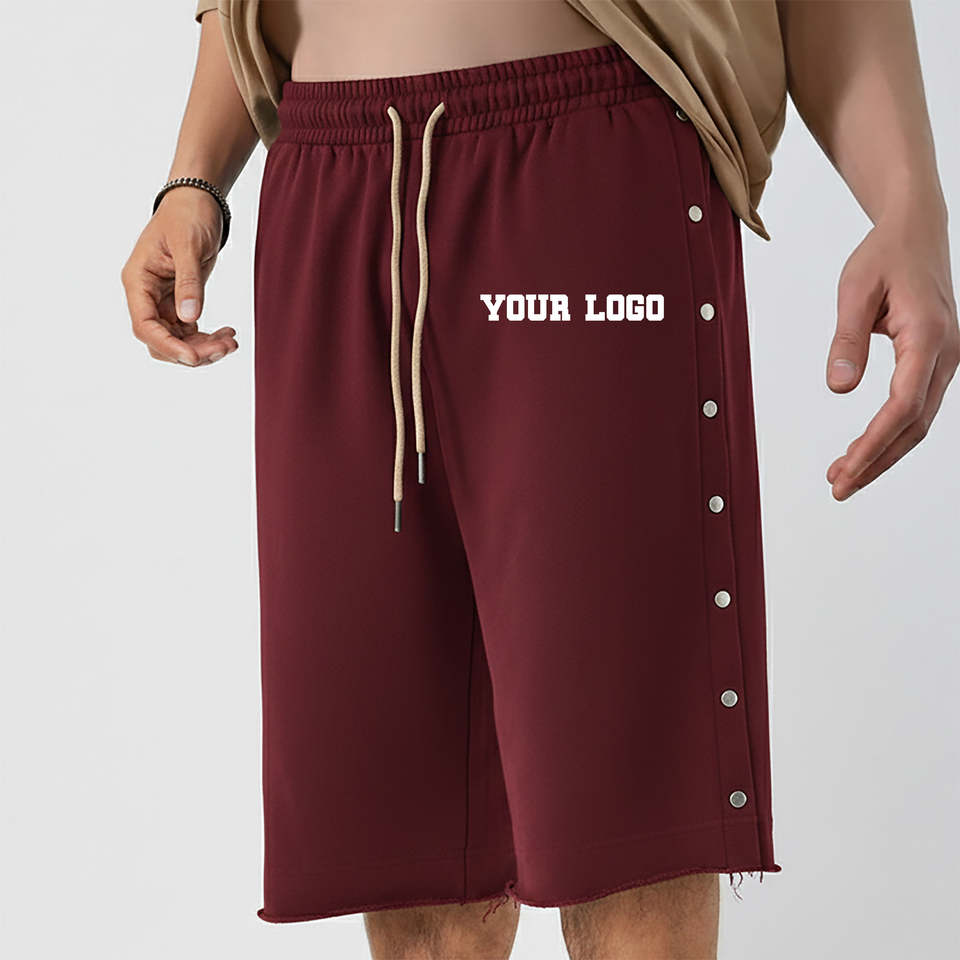 Pantalones cortos para hombre con botones laterales de nuevo estilo, logotipo impreso en 3D personalizado, de tela gruesa, cintura media, estilo urbano.