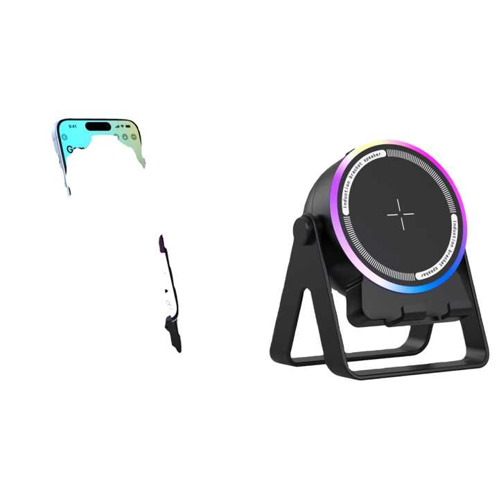 Nuevo soporte multifunción inalámbrico para teléfono móvil con inducción de audio, luces RGB, soporte de escritorio, audio BT