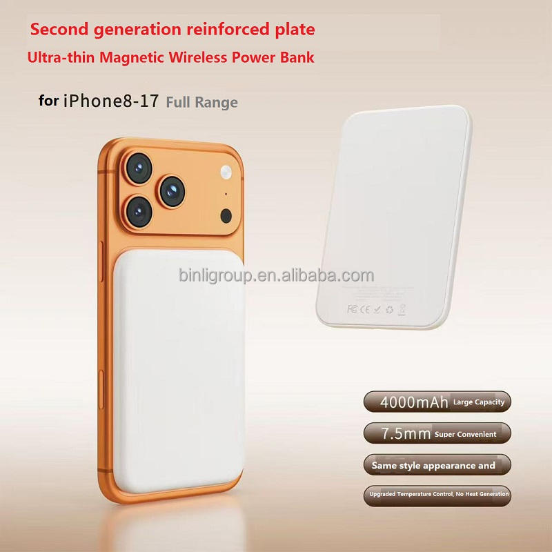 Nuevo Cargador Inalámbrico Magnético de Segunda Generación, Venta al por Mayor de Fábrica, Banco de Energía de 4000 mAh, Bancos de Energía Móviles, Carga Rápida, Portátil