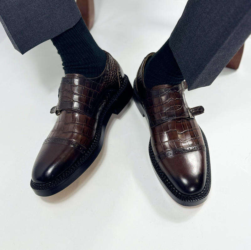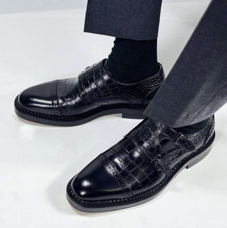 Zapatos de cuero de doble botón para hombre, estilo nuevo, zapatos de cuero para hombre de negocios, zapatos formales negros, zapatos de vestir y Oxfords