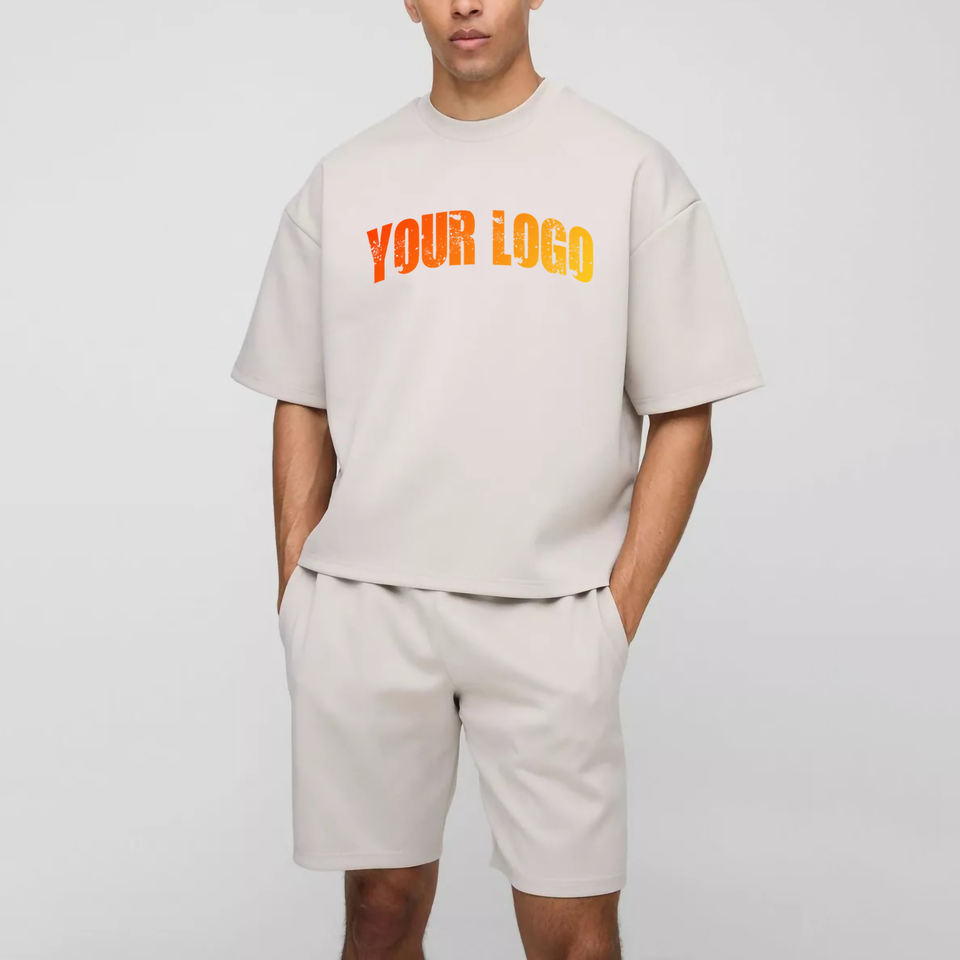Nuevo conjunto de traje de correr de 2 piezas de moda para hombres, camiseta y conjunto corto, chándal de hip hop con logotipo impreso DTF personalizado para hombres