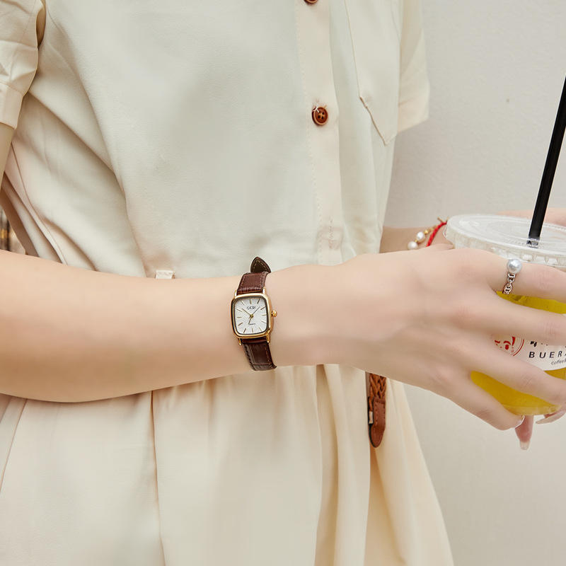 Nuevo reloj de mujer, exquisito, compacto, de alta calidad, de cuero genuino, retro, de cuarzo.