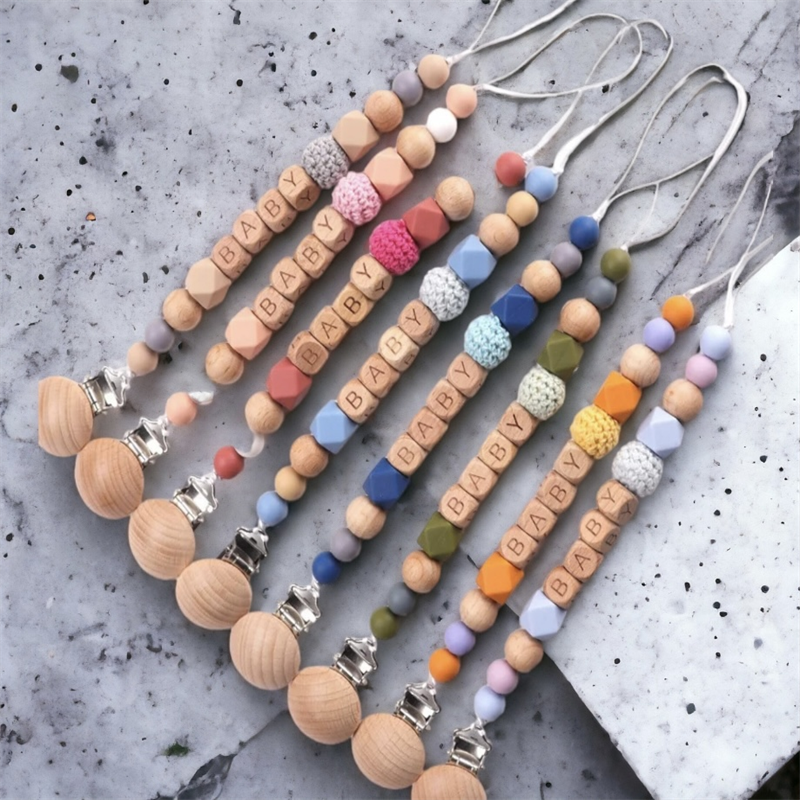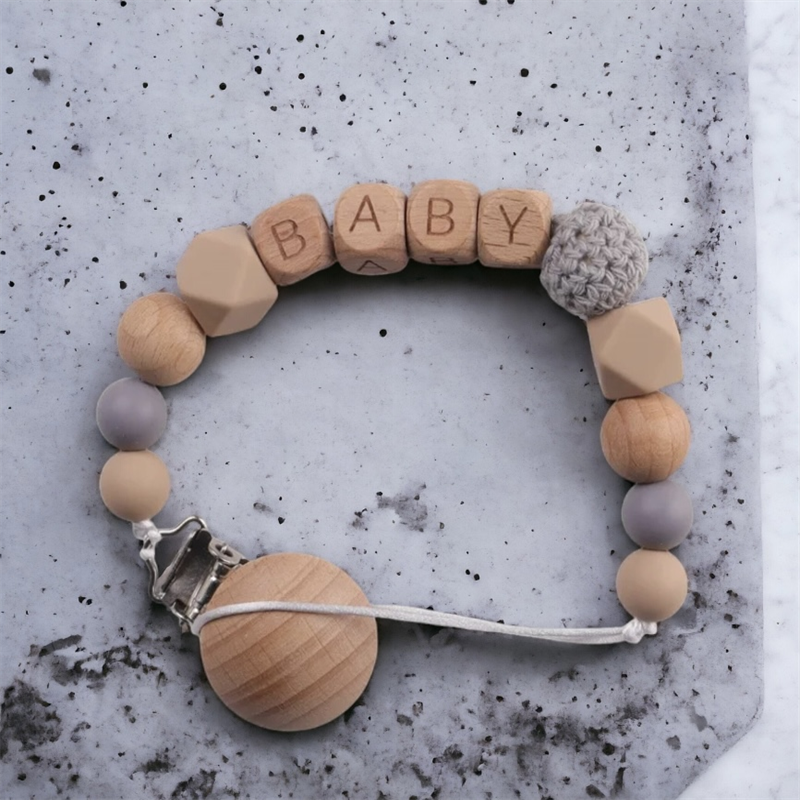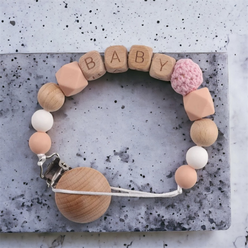 Bebé recién nacido bautismo regalo chupete Clip ganchillo chupete cadena silicona chupete Clip con nombre para bebé