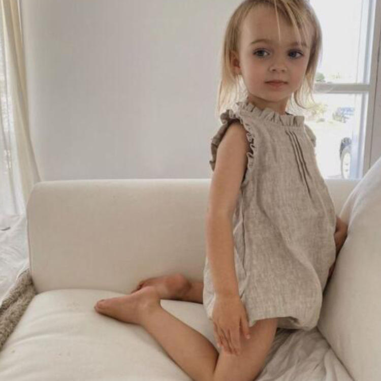 Ropa de Bebé Recién Nacido, Mono de Lino con Volantes, Transpirable, de Cáñamo y Algodón, para Verano, Venta al Por Mayor