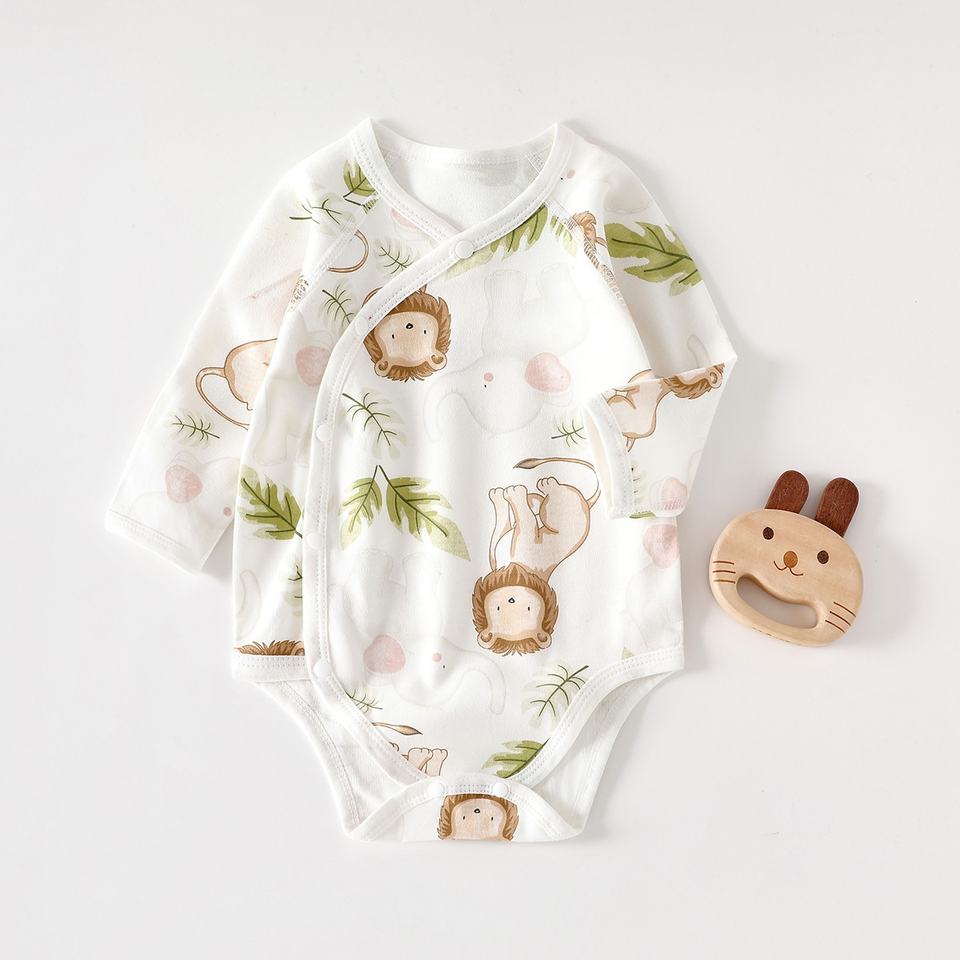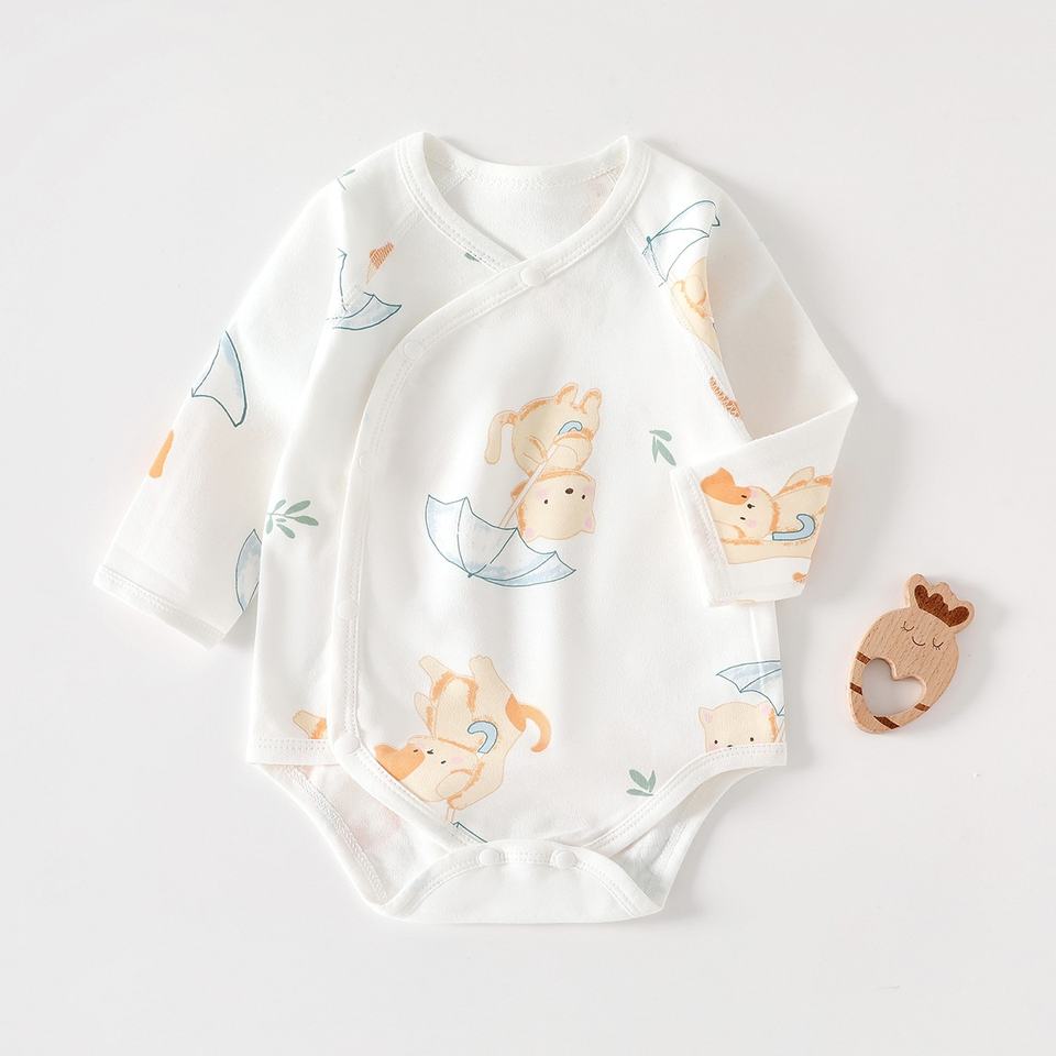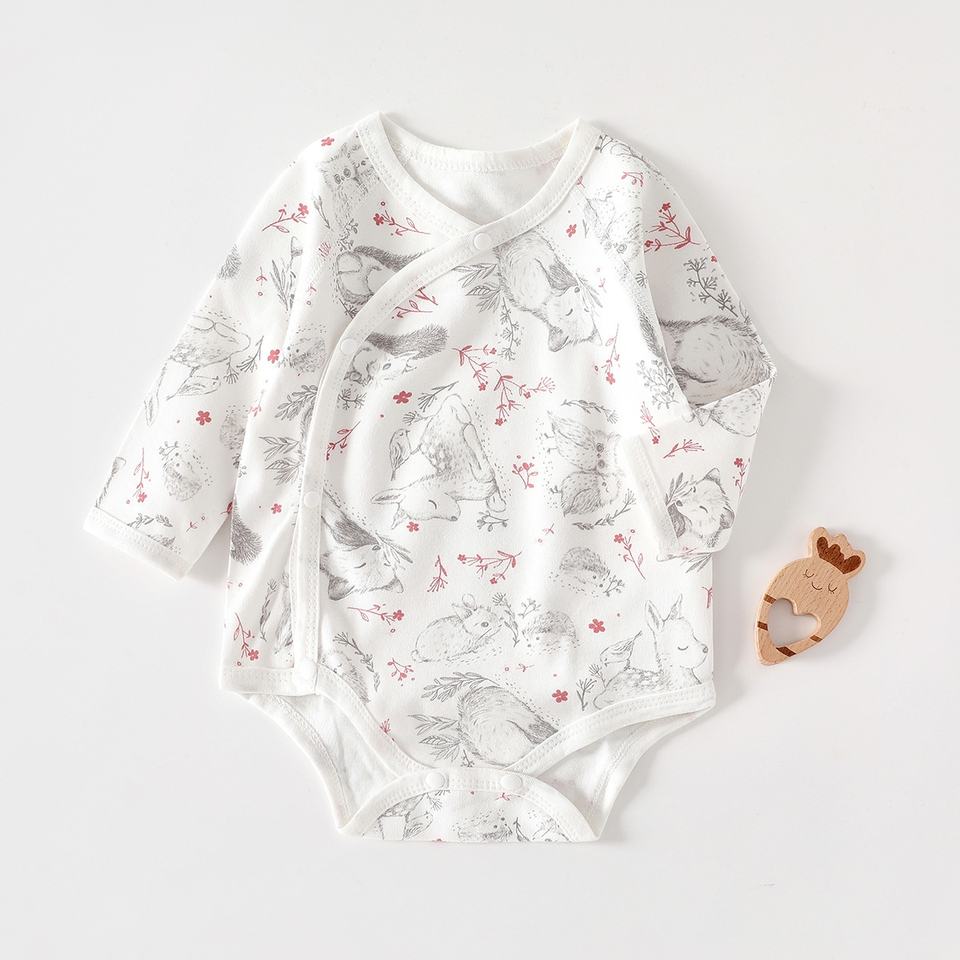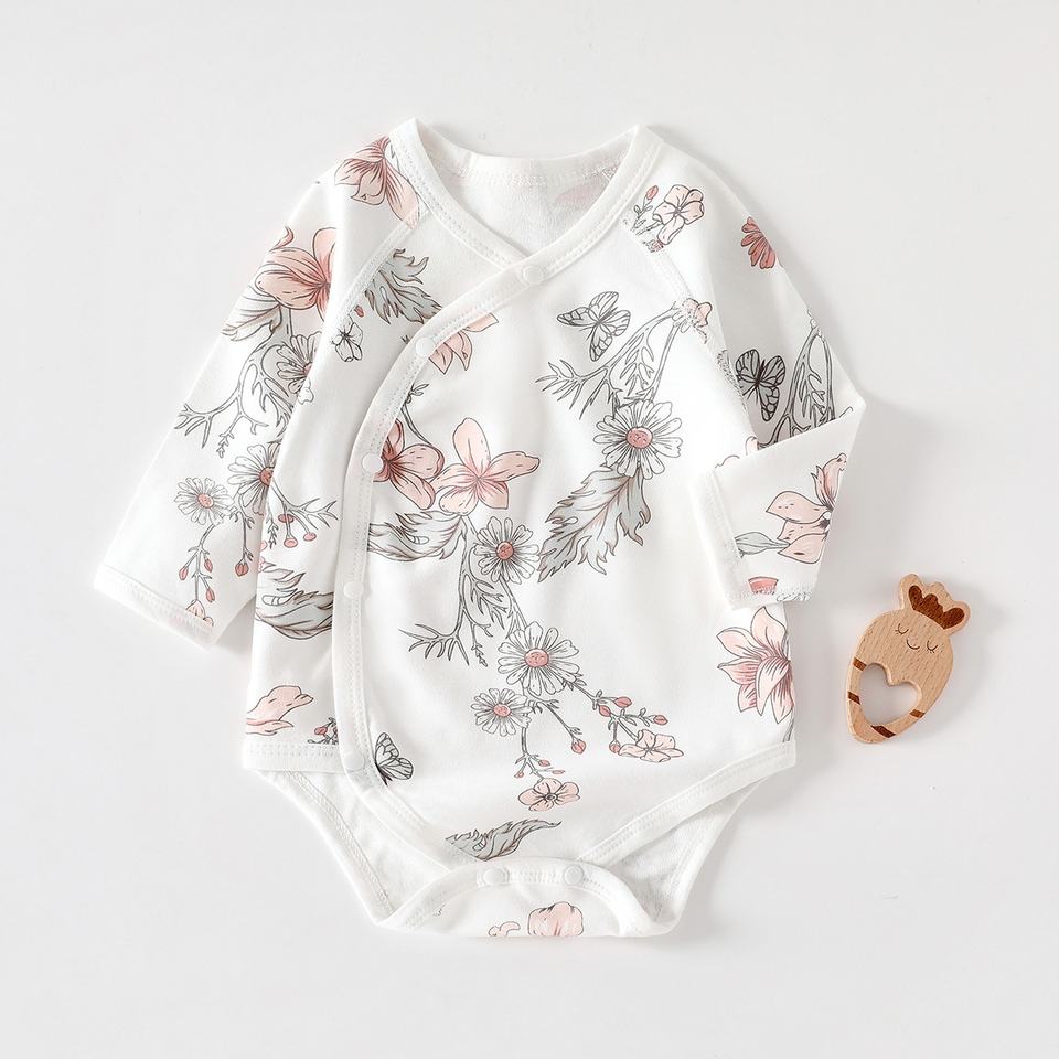 Mono para Bebé Recién Nacido, Diseño Floral, Cierre con Cordones en Ángulo, Etiqueta en el Cuello, Primavera-Otoño, Manga Larga, Algodón Puro, Sin Costuras