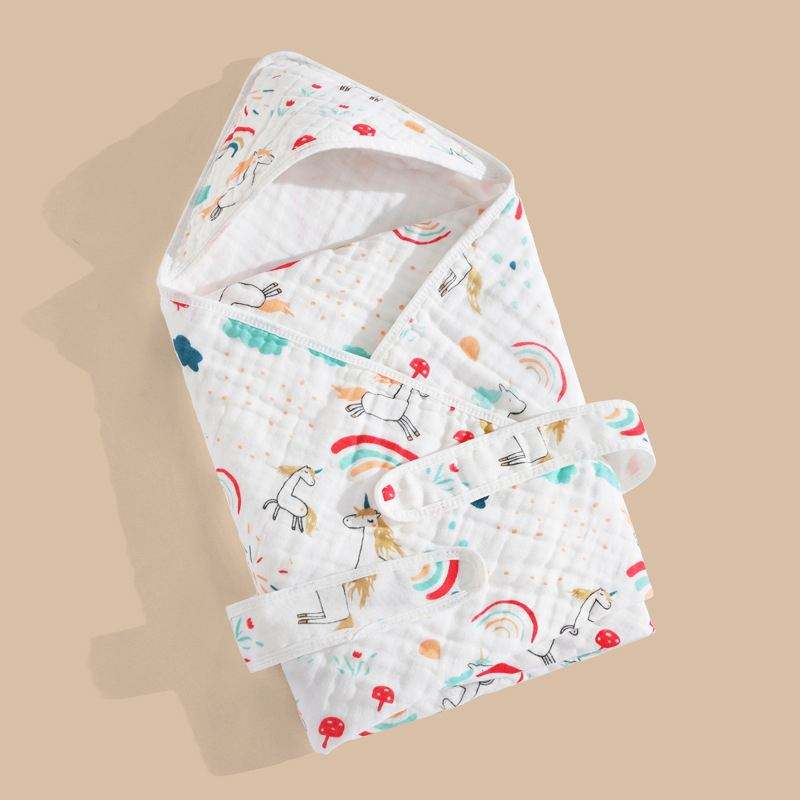 Saco de Dormir para Bebé Recién Nacido, 6 Capas de Gasa, Toalla con Capucha de Dibujos Animados, Manta de Preparación para Baby Shower