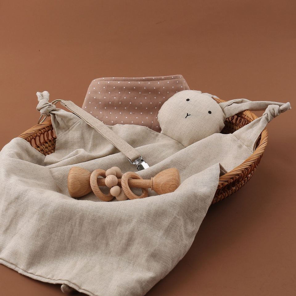 Caja de regalo para recién nacido, juego de regalo para bebé, Manta de algodón para bebé, para la dentición babero, sonajero, hito, juguete de madera, 4 juegos