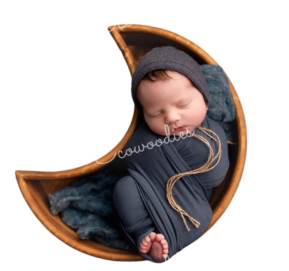 Palabra clave:Recién nacido fotografía Luna forma madera recién nacido posando props