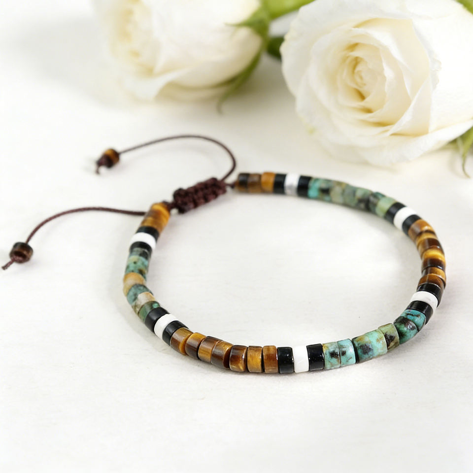 Pulsera de Piedras Naturales de Pino Africano Multicolor, con Cuentas de Cristal, Ajustable, Moderna, para Mujer, Regalo