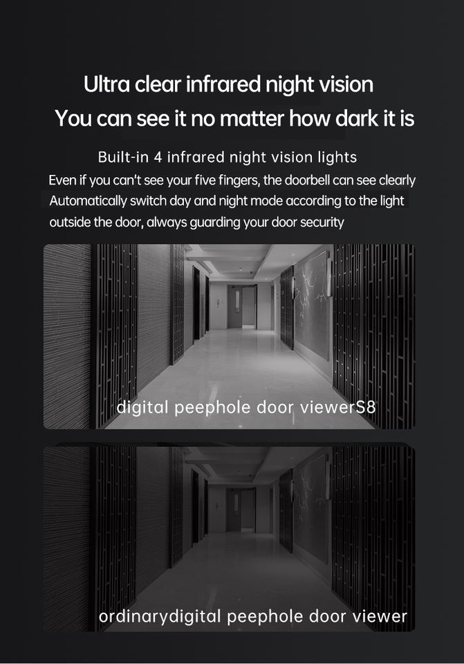Videoportero WiFi con Detección de Movimiento PIR, Visión Nocturna, Apagado Automático, Pantalla de 4.3 Pulgadas, Amplio Rango Dinámico
