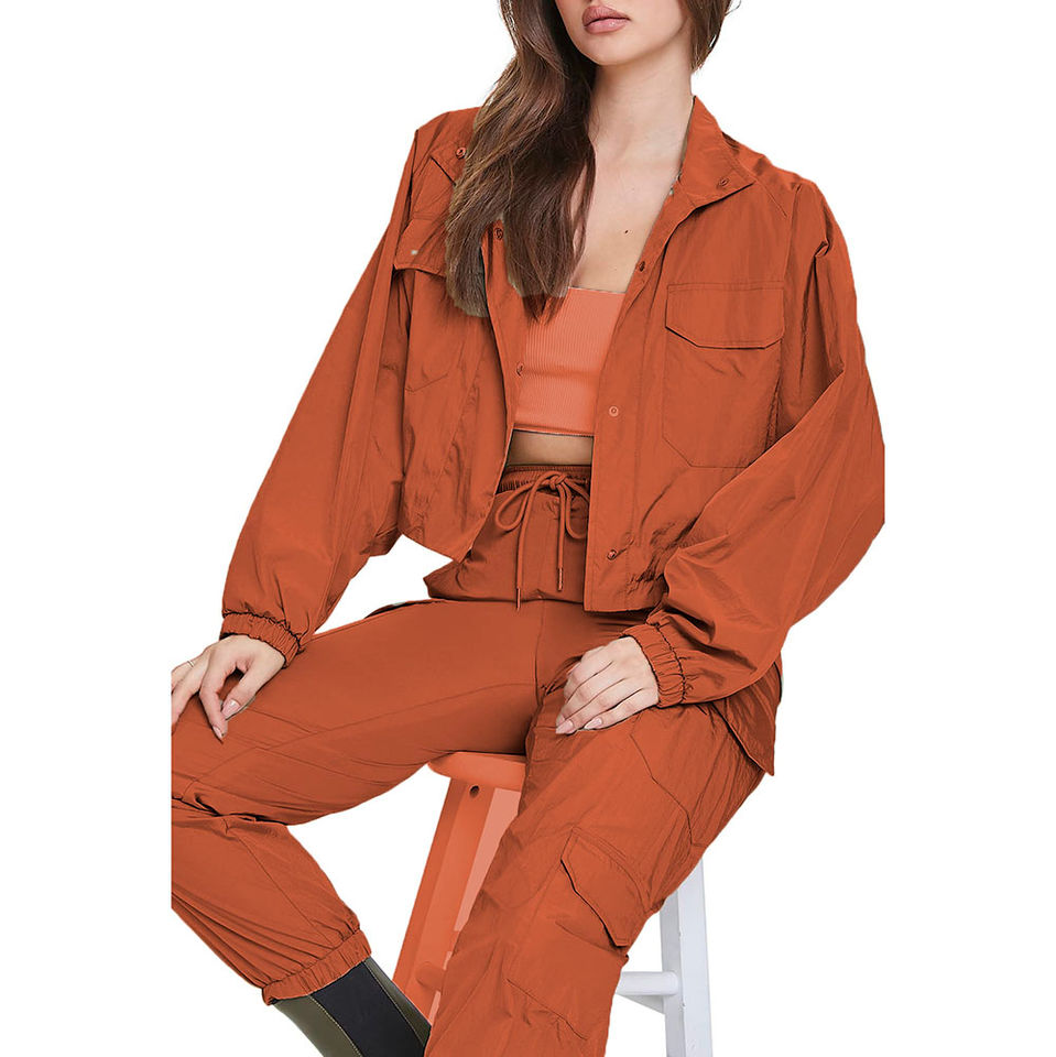 Nuevo Conjunto Deportivo Corto de Verano para Mujer, Chaqueta Cortavientos de Manga Raglán y Pantalones, Diseño de Color de Moda, Precio Económico de Fábrica