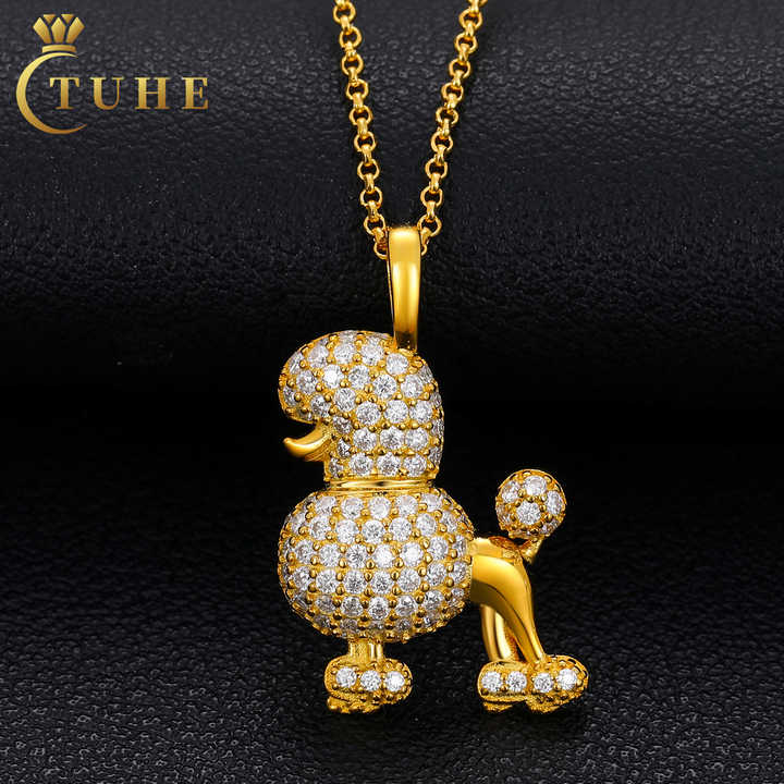 El más nuevo diseño lindo perro mascota Animal encanto colgante Hip Hop joyería 925 plata esterlina VVS Moissanite colgante collar