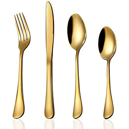 Juego de Cubiertos de Diseño Más Reciente para Hogar, Restaurante y Hotel, Color Plata y Oro, Diseño Único, Juego de Cubiertos de Acero Inoxidable