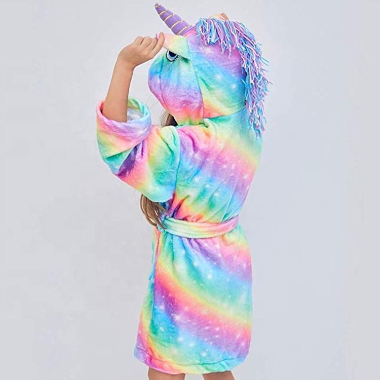 Bata de ducha con capucha para niños, albornoces de unicornio de franela