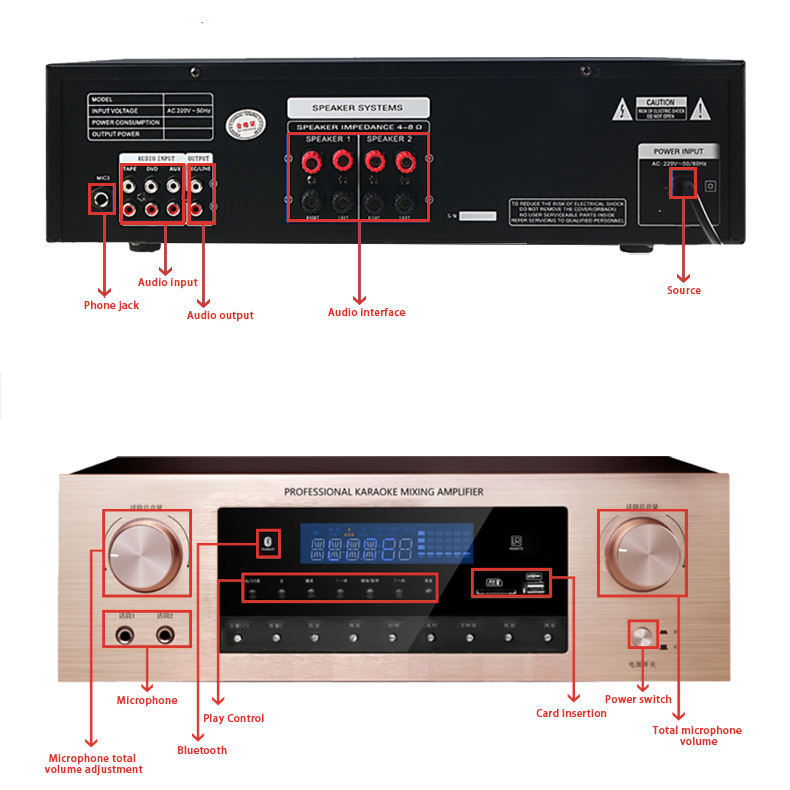 Amplificador, Pantalla táctil, MicrófonoComponentes del sistema Karaoke