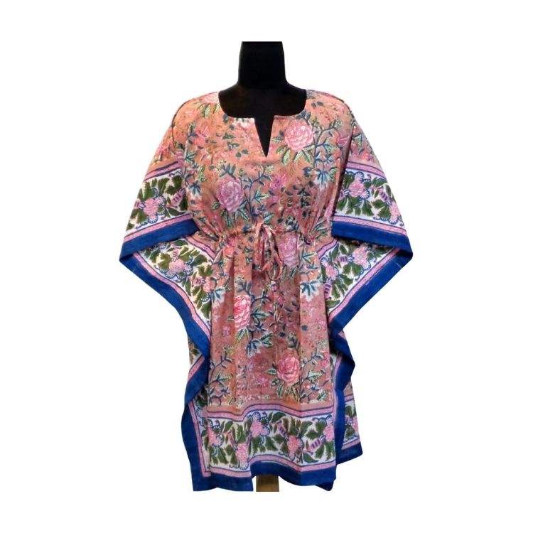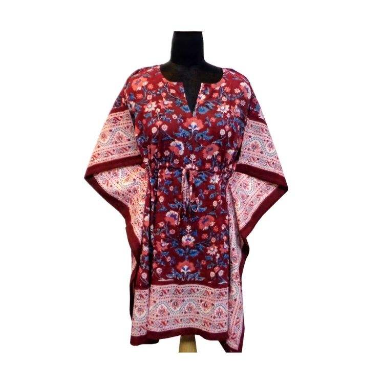 Nueva tendencia elegante de talla grande de algodón Cambric Kaftan para mujeres bloque indio impreso suave transpirable cómodo para DailyWear