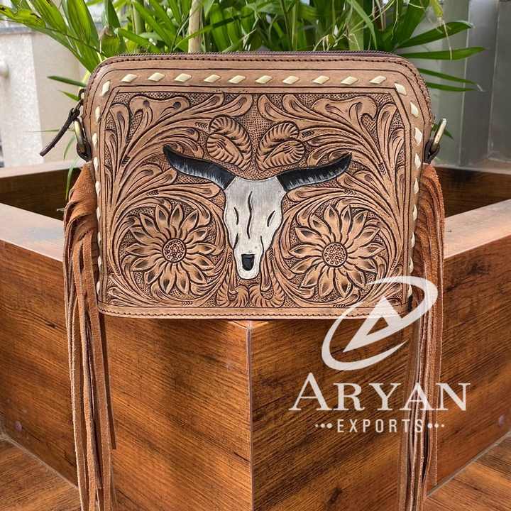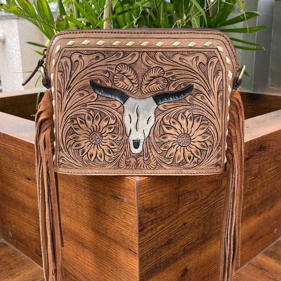 Nombre del producto:Mano Tooled Cuero Fringe Monedero