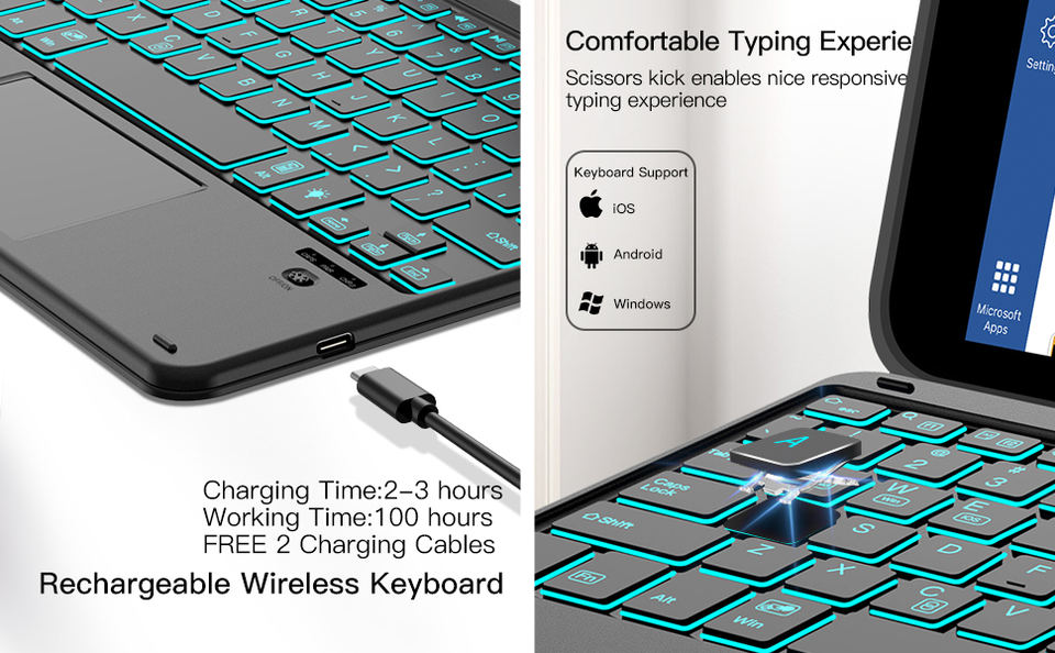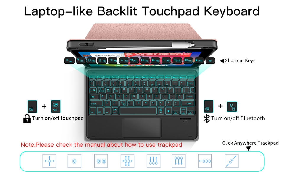 Teclado inalámbrico Bt con panel táctil para Ipad Pro Air 10,2, 10,5, 10,9, 11, 12,9 pulgadas, teclado árabe e inglés, novedad