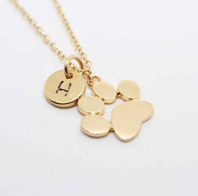 Collar de impresión de pata inicial de letra personalizada