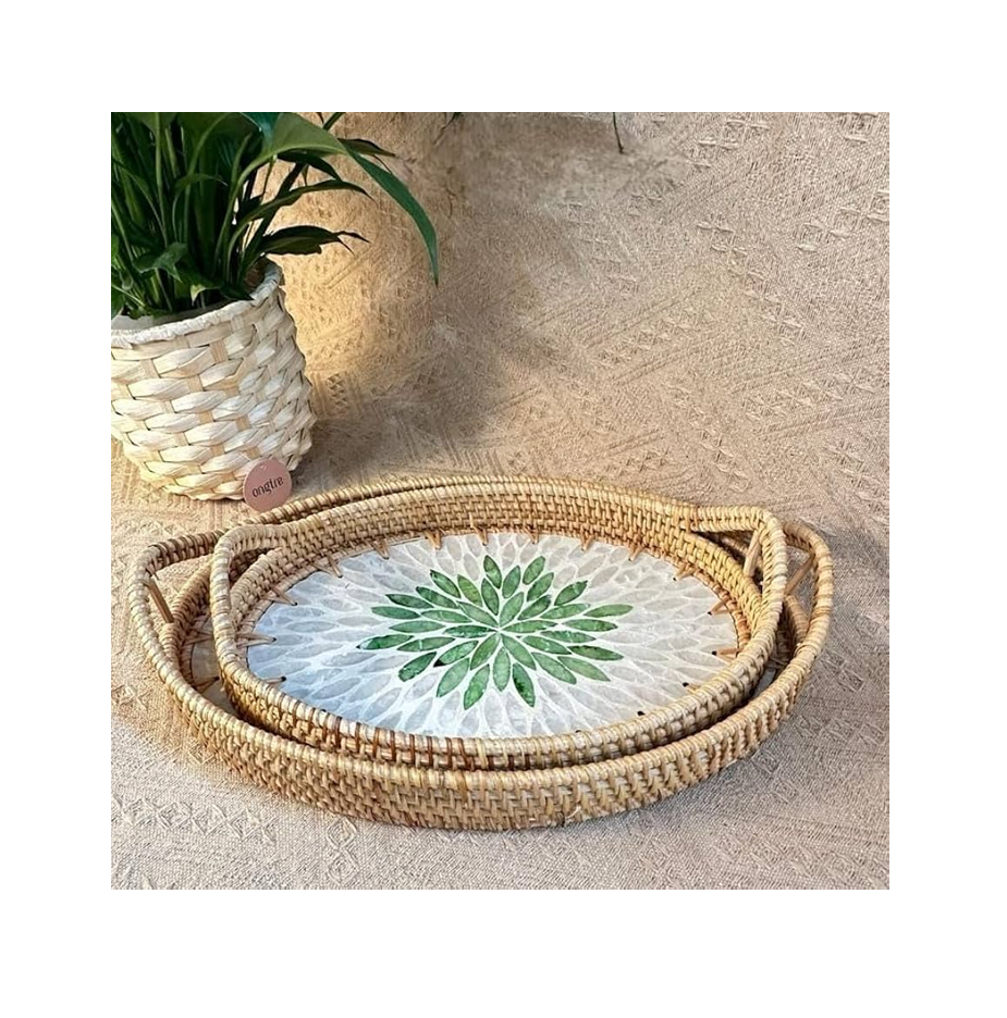 Bandeja rectangular de diseño nuevo, de mimbre y ratán, para el desayuno, para guardar tazas de té y café, a precio de mayorista.