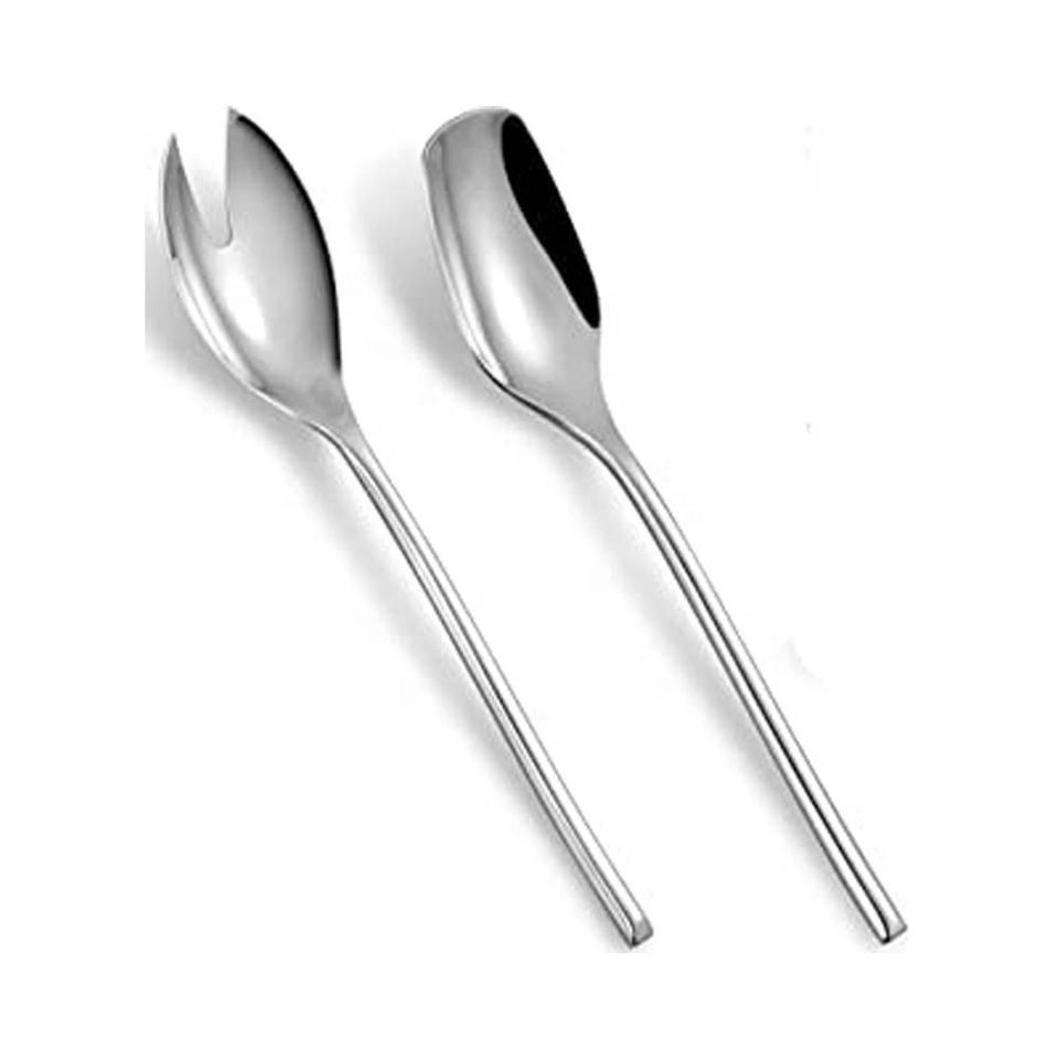Cuchara chapada en plata de nuevo diseño, juego de servir ensalada con mango plano, cuchara grande con mango largo, ensalada de buffet