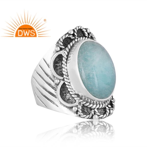 Anillo de declaración de piedras preciosas de amazonita Natural de plata de ley de nuevo diseño, joyería personalizada para mujer, regalo para ella