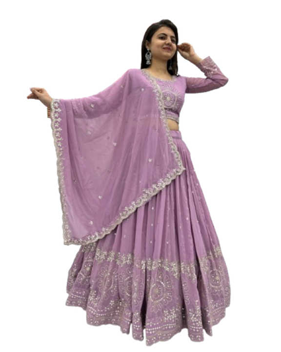 Diseñador recién lanzado Srara Choli Calidad excepcional Fusión de longitud larga de lentejuelas bordadas de imitación Georgette para fiestas