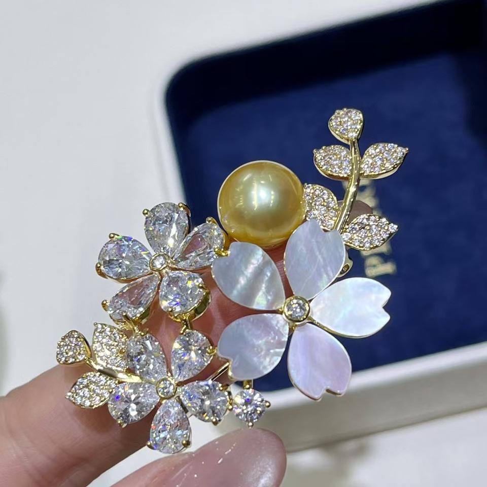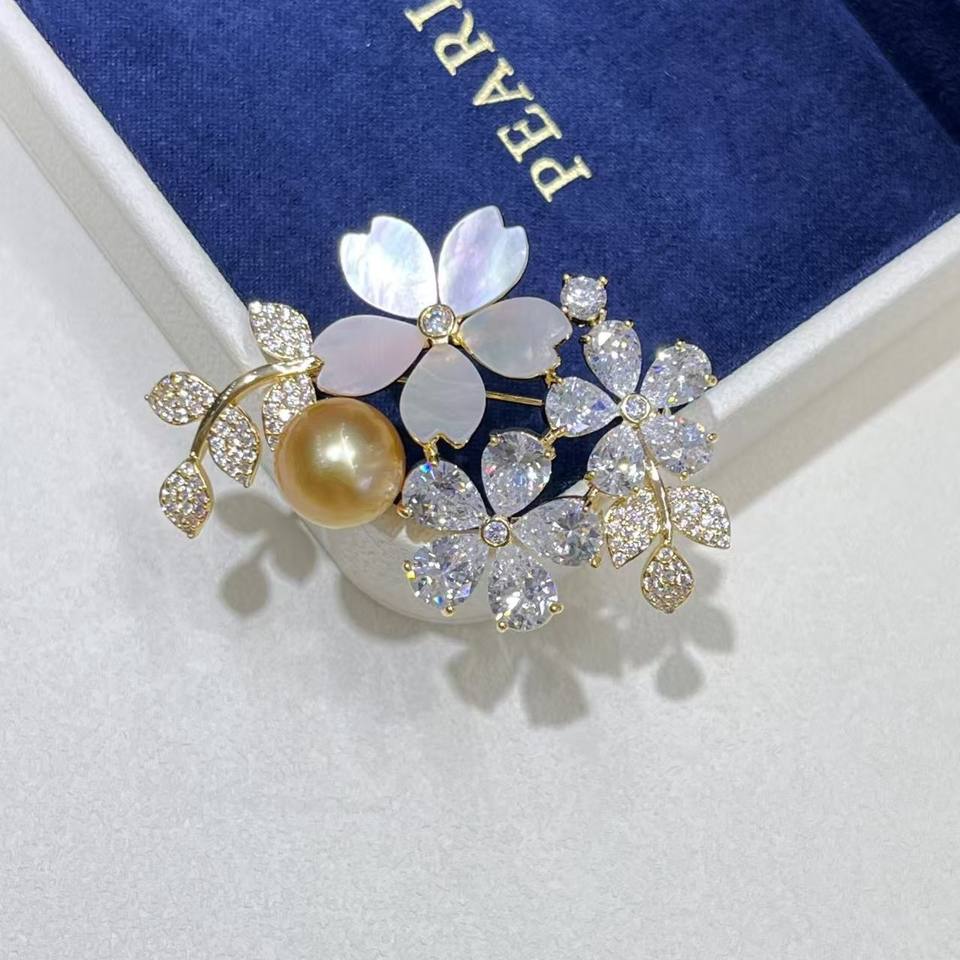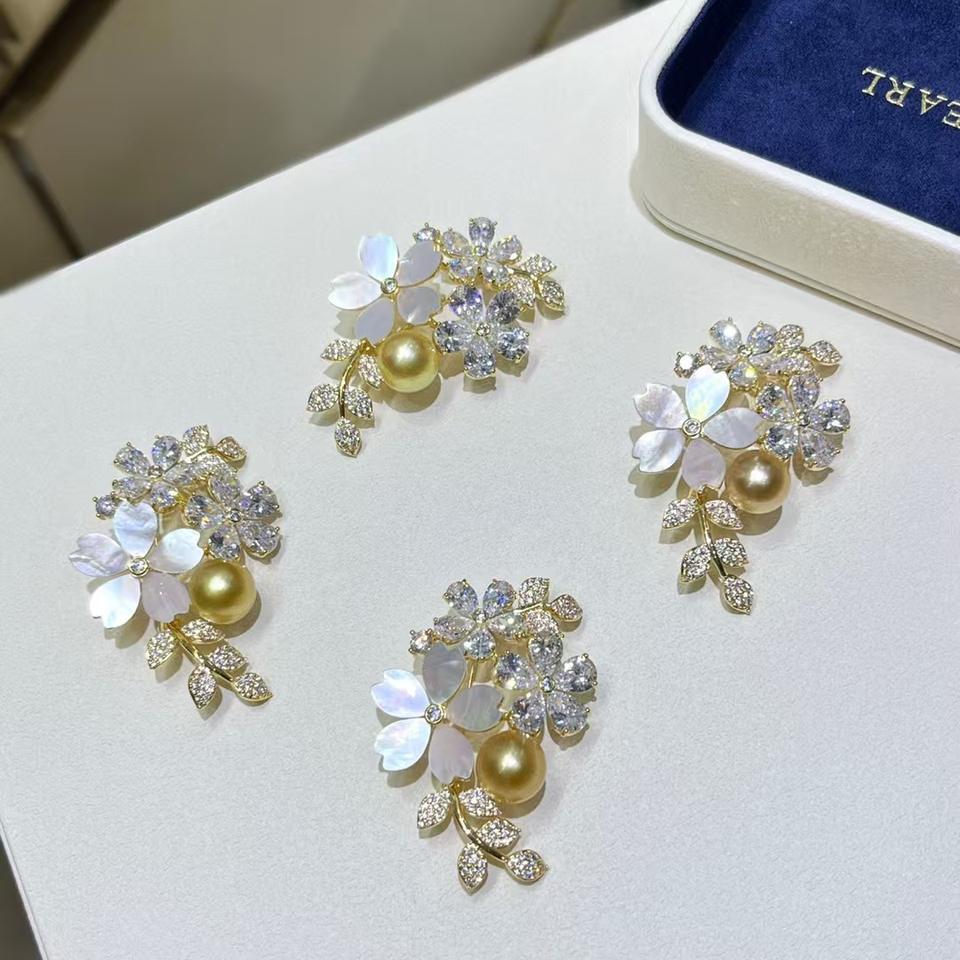 Broches de Perlas de Agua de Mar Doradas de 10-12 mm Recién Comprados, Ligeramente Imperfectos pero Perfectamente Elegantes