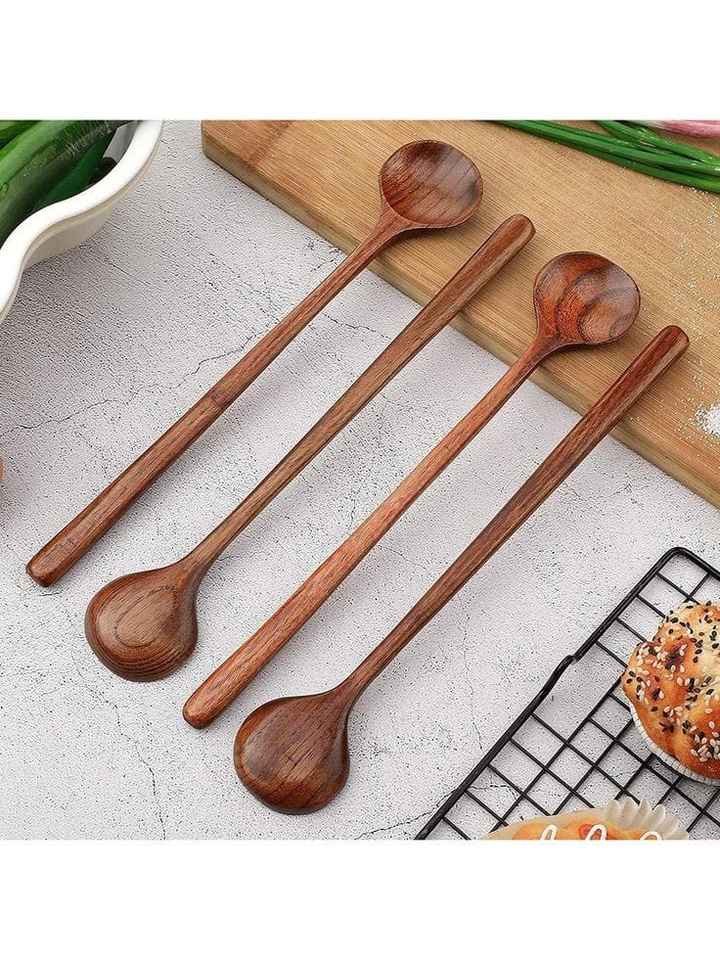 Juego de 3 utensilios de teca de madera natural Cuchara y espátula de nueva forma para cocina Utensilios de cocina para hoteles Elaborados a partir de artesanías naturales
