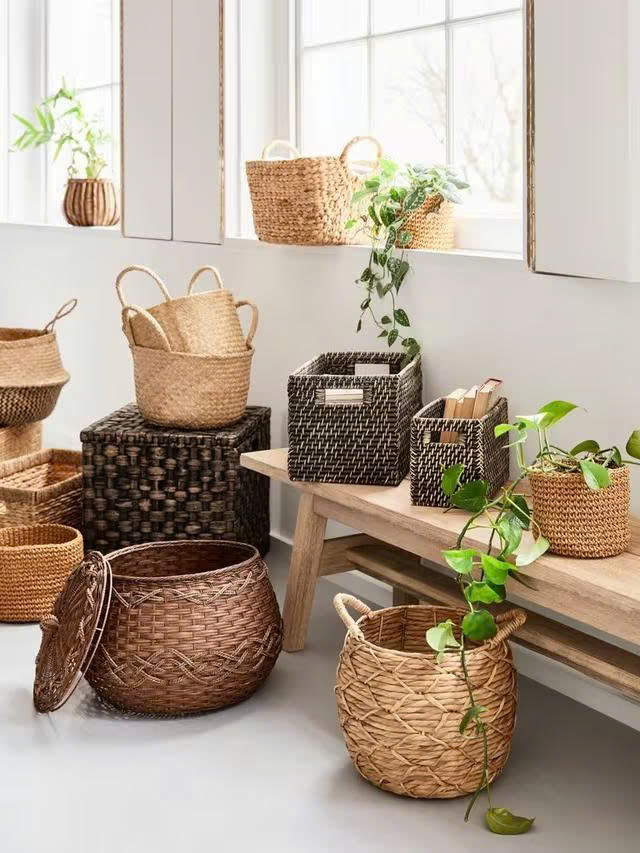 Cesto de ropa rectangular de nuevo diseño, tejido con jacinto de agua natural, un cesto de almacenamiento para artículos del hogar.