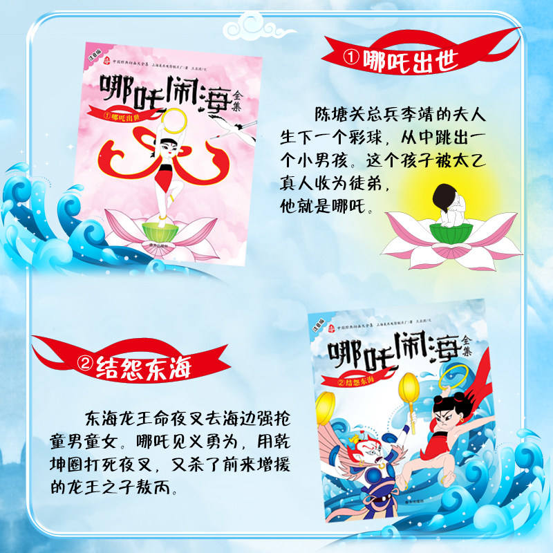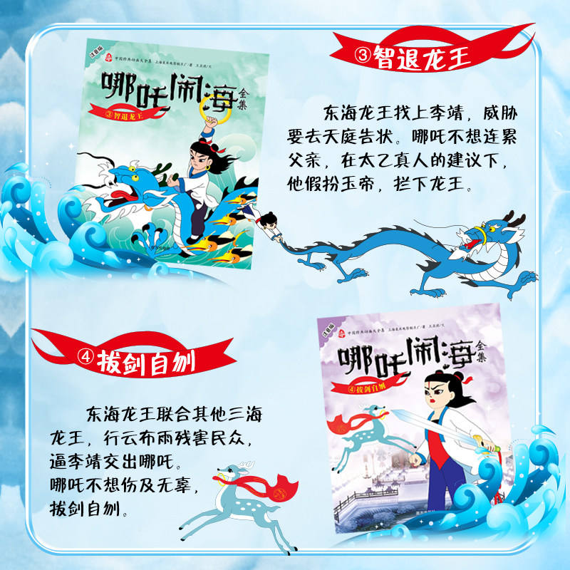 Nezha Conquers Sea - Juego Completo (Modelo 9787550139756) - 5 Volúmenes con Notación Fonética, Libro Ilustrado para Lectura Preescolar entre Padres e Hijos