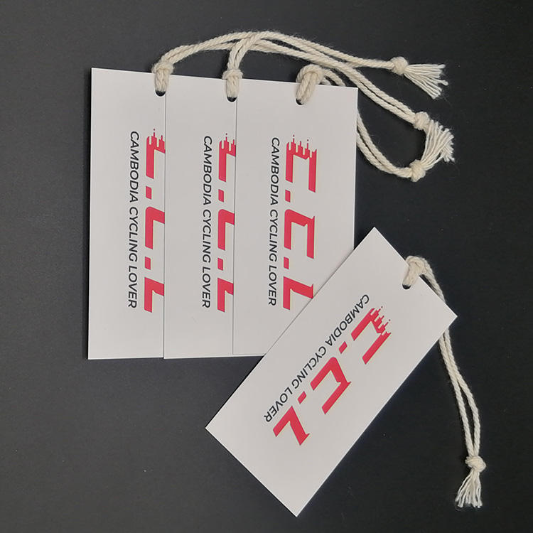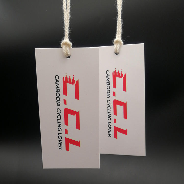 Nombre del producto:Etiqueta colgante doblada cartulina blanca del logotipo 350GSM de la marca de encargo para el lazo