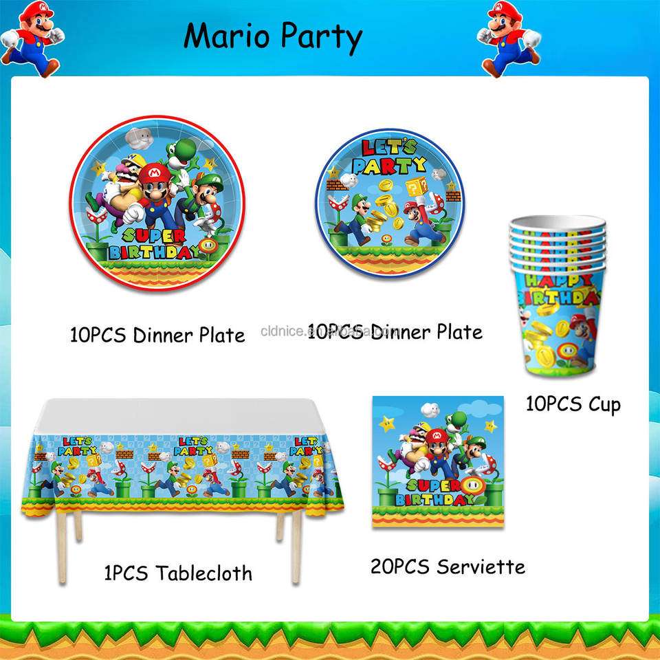 Bonitos Artículos de Mesa de Cumpleaños de Dibujos Animados de Mario, Vajilla Desechable para Fiesta de Cumpleaños Infantil, Accesorios de Escena, Juguetes, Lindas Servilletas de Papel, Vasos y Platos