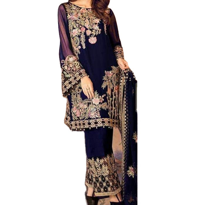 Traje negro bordado, estilo paquistaní, Salwar, Kameez