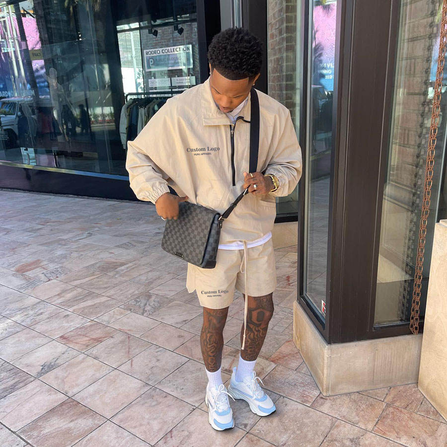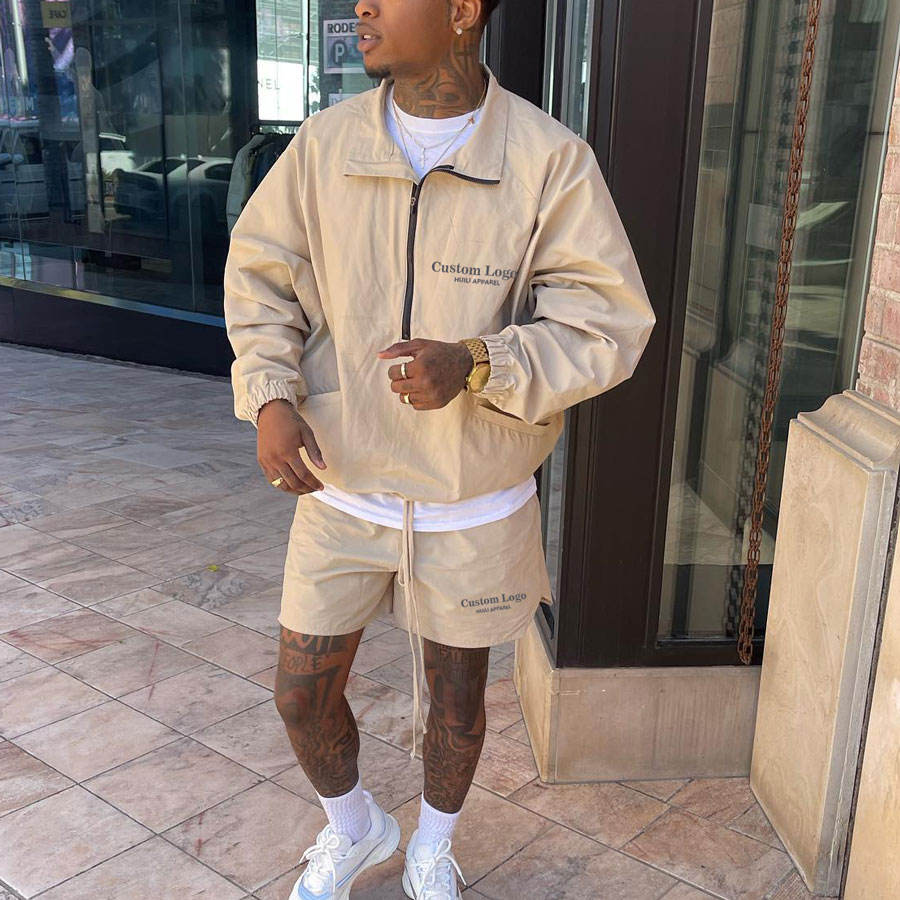 Bonito chándal corto de color, ropa de calle, sudadera cortavientos, pantalones de nailon, conjunto de pantalones cortos, chándal para hombre